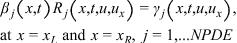 In the boundary conditions the functions and are continuous. In the two cases with , with an endpoint of at 0, the finite value of the solution at must be ensured. This requires the specification of the solution at , or it implies that or . The initial values satisfy , where is a piece-wise continuous vector function of with components.
