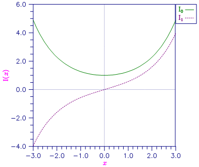 Evaluates the real modified Bessel function of the first kind of order zero I0(x).