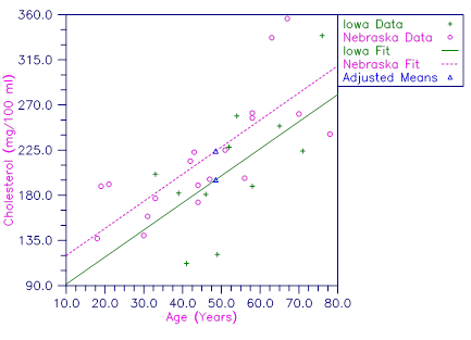 For these data, the test for non-parallelism is not statistically significant (p = 0.901). The one-way analysis of covariance test for the treatment means adjusted for the covariates, assuming parallel slopes, is statistically significant at a stated significance level of α = 0.05, (p = 0.04931).