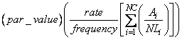 In the equation below, Ai represents the number days which have accrued for the ith quasi-coupon period within the odd period. (The quasi-coupon periods are periods obtained by extending the series of equal payment periods to before or after the actual payment periods.) NC represents the number of quasi-coupon periods within the odd period, rounded to the next highest integer. (The odd period is a period between payments that differs from the usual equally spaced periods at which payments are made.) NLi represents the length of the normal ith quasi-coupon period within the odd period. NLI is expressed in days.