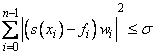 Recommended values for σ depend on the weights w. If an estimate for the standard deviation of the error in the value fi is available, then wi should be set to the inverse of this value; and the smoothing parameter σ should be chosen in the confidence interval corresponding to the left side of the above inequality. That is,