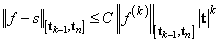 General conditions are not known for the exact behavior of the error in spline interpolation; however, if t and x are selected properly and the data points arise from the values of a smooth (say Ck) function f, i.e. fj = f(xj), then the error will behave in a predictable fashion. The maximum absolute error satisfies