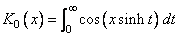 Since K0(x) is complex for negative x and is undefined at x = 0, imsl_f_bessel_K0 is defined only for x > 0. For large x, imsl_f_bessel_K0 will underflow.