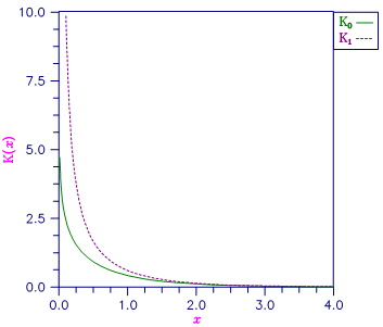 Figure 9- 12 Plot of K0(x) and K1(x)