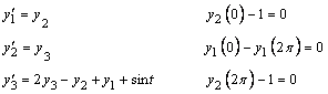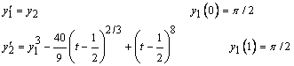 with y(0) = y(1) = p/2. As in the previous examples, this equation is reduced to a system of first-order differential equations by defining y1 = y and y2 = y¢. The resulting system is