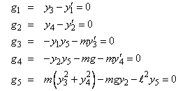 gval[4] = masskg*(y[2]*y[2] + y[3]*y[3]) - mg*y[1] - lensq*y[4];