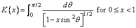 The argument x must satisfy 0 £ x < 1; otherwise, imsl_f_elliptic_integral_K returns imsl_f_machine(2), the largest representable floating-point number.