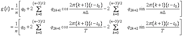 This formula is very revealing. It can be interpreted in the following manner. The coefficients q produced by imsl_f_fft_real determine an interpolating trigonometric polynomial to the data. That is, if we define