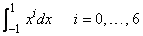 printf("The integral from -1 to 1 of pow(x, i) is\n");
