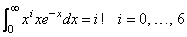 printf("The integral from 0 to infinity of pow(x, i)*x*exp(x) is\n");