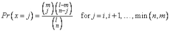 parameters n, l, and m. The hypergeometric random variable