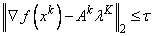 Now, for each iteration with a feasible xk, let Jk be the set of indices of inequality constraints that have small residuals. Here, the simple bounds are treated as inequality constraints. Let Ik be the set of indices of active constraints. The following quadratic programming problem