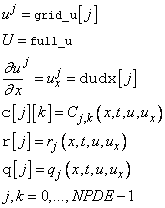 pde_systems (double t, double x, int npdes, int ngrids, double u[],