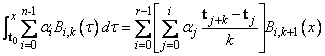 This function uses the (univariate integration) identity (22) in de Boor (1978, p. 151)