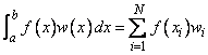 for all functions f that are polynomials of degree less than 2N. The weight functions w may be selected from the following table.