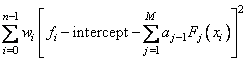 If the optional argument IMSL_INTCERCEPT is chosen, then an intercept is placed in the model, and the coefficients a, returned by imsl_f_user_fcn_least_squares, minimize the error sum of squares as indicated below.