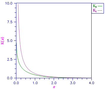 Figure 9- 12 Plot of K0(x) and K1(x)
