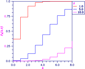 The function imsl_f_poisson_cdf evaluates the distribution function of a Poisson random variable with parameter theta. The mean of the Poisson random variable, theta, must be positive. The probability function (with θ = theta) is