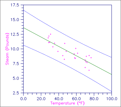 Figure 1, Plot of Line and 99% One-at-a-Time Prediction Intervals