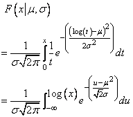 The function ALNDF evaluates the lognormal cumulative probability distribution function, defined as
