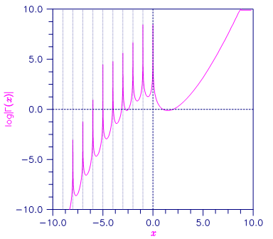The function ALNGAM computes ln |G(x)|. See GAMMA for the definition of G(x).
