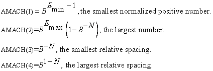 The function subprogram AMACH retrieves machine constants that define the computer's single-precision or double precision arithmetic. Such floating-point numbers are represented in normalized N-digit, base B form as
