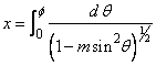 The Jacobi elliptic function sn(x, m) = sin ɸ, where the amplitude ɸ is defined by the following: