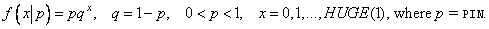 PIN — Probability parameter of the geometric probability function (the probability of success for each independent trial). PIN must be in the open interval (0, 1). (Input)