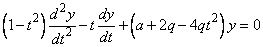 It arises from the solution, by separation of variables, of Laplace's equation in elliptical coordinates, where a is the separation constant and q is related to the ellipticity of the coordinate system. If we let t = cos v, then Mathieu's equation can be written as