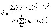 Computes the biserial correlation coefficient for a dichotomous variable and a classification variable.