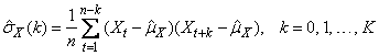 The autocovariance function of {Xt}, σX(k), is estimated by