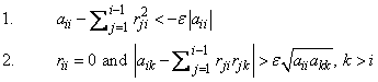 2. Elements of row i of R are set to 0.0 if a linear dependence is declared. Linear dependence is declared if