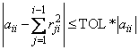 where ε (stored in TOL) is the input tolerance. When a linear dependence is declared, all elements in the i-th row of R are set to zero.