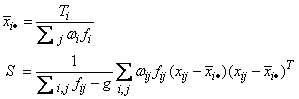 where ωij is the observation weight, xij is the j-th observation in the i-th group, and fij is the observation frequency.