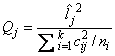 The associated sum of squares Qj (stored as the j-th element of SS) is computed by