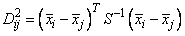 D2 — NGROUP by NGROUP matrix containing the Mahalanobis distances