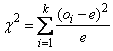 where oi = COUNT(i) is the observed count. Thus, Χ2 has k − 1 degrees of freedom, and the null hypothesis of pseudorandom uniform (0, 1) deviates is rejected if Χ2 is too large. As n increases, the chi-squared approximation becomes better. A useful generalization is that e > 5 yields a good chi-squared approximation.