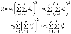 is minimized by finding a rotation matrix T such that (λij) = Λ = AT and T−1 (T−1)T is a correlation matrix. Here, ωi= W(i), i = 1, , 4 are user specified constants. The rotation is said to be direct because it minimizes Q with respect to the factor loadings directly, ignoring the reference structure (see, e.g., Harman, 1976).