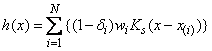 where djk is the distance to the k-th nearest failure from x(j), and x(j) is the j-th ordered observation (from smallest to largest). For given α and β, the hazard at point x is then