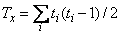 where ti is the number of observations in the i-th tie group for the x (or y) summation variable.