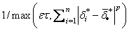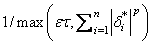 where n is the number of nonmissing disparities, and p = POWER is the power to be used. This stress formula, when optimized, can lead to to normal distribution theory maximum likelihood estimation. It can not be used in nonmetric scaling. The weight is computed as n/max(nε, τ).