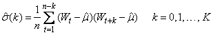 The autocovariance function σ(k) is estimated by