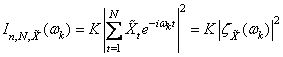 nonnormalized spectral density function at each frequency ωk (Priestley 1981, page