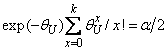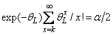 2. Since the Poisson is a discrete distribution, it is not possible to construct an exact CONPER% confidence interval for all values of CONPER. Let α = 1 − CONPER/100, and let k be a single observation. Then, the approximate lower and upper confidence limits θ L and θ U (TLOWER and TUPPER) are solutions to the equations