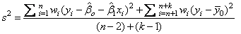 where (n − 2) + (k − 1) (stored in DFS2) is the pooled degrees of freedom for s2.