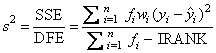 DFE Sum of the frequencies minus IRANK. (Output) In a least squares fit (p = 2), DFE is called the degrees of freedom for error.