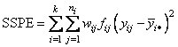 Let ni be the number of rows of X in the i-th group of replicates (i = 1, 2, …, k). Let yij be the response for the j-th row within the i-th group. Let wij and fij be the associated weight and frequency, respectively. The pure error (within group) sum of squares is