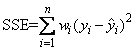 for the n observations. This minimum sum of squares (the error sum of squares) is output and denoted by