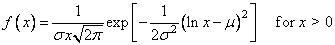 With μ = XM and σ = S, the probability density function for the lognormal distribution is