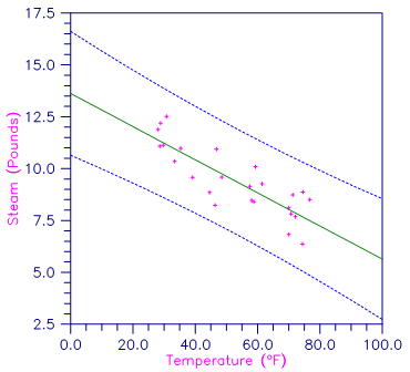 Figure 2- 2 Plot of Line and 99% One-at-a-Time Prediction Intervals